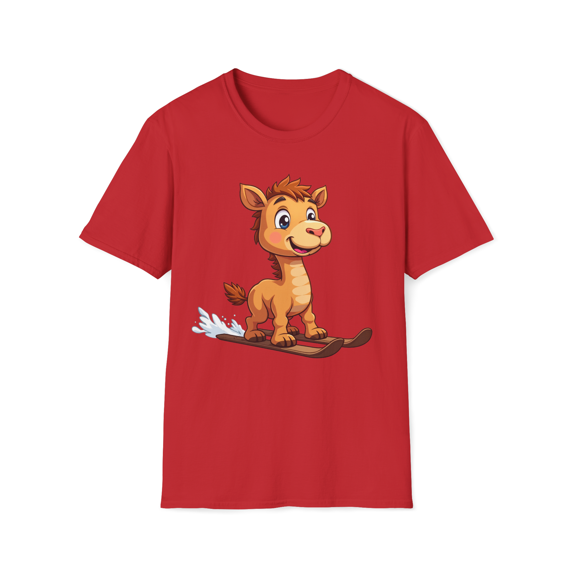A fun and quirky T-Shirt featuring a cammel skiing design, perfect for those who enjoy unique and playful clothing. This T-Shirt is ideal for casual wear and would make a great gift for animal lovers and those who appreciate humor in their wardrobe. Suitable for holidays, outdoor adventures, and everyday wear.