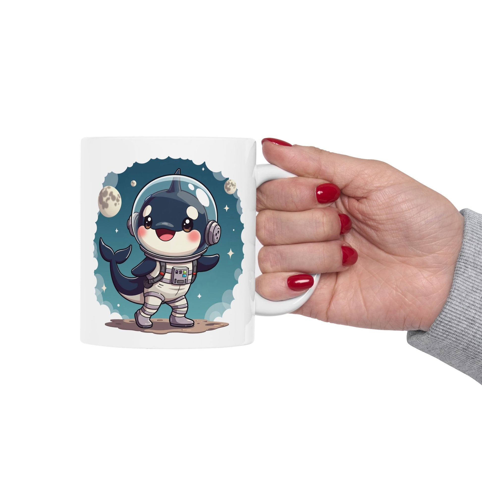 Space Orca Mug - Orca on Moon Coffee Cup 11oz